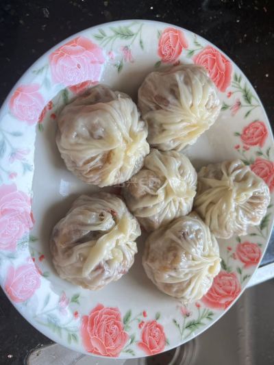 早起跟女儿一起做了能拉丝的纸皮烧麦