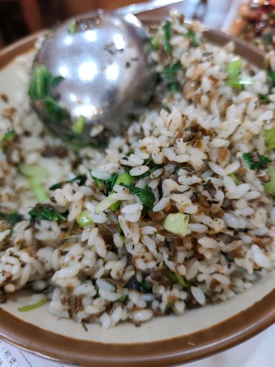 我们上次去也是点了这三样,绍子炒饭真的是每桌必点的兔肠很脆