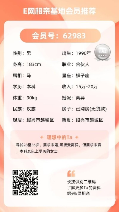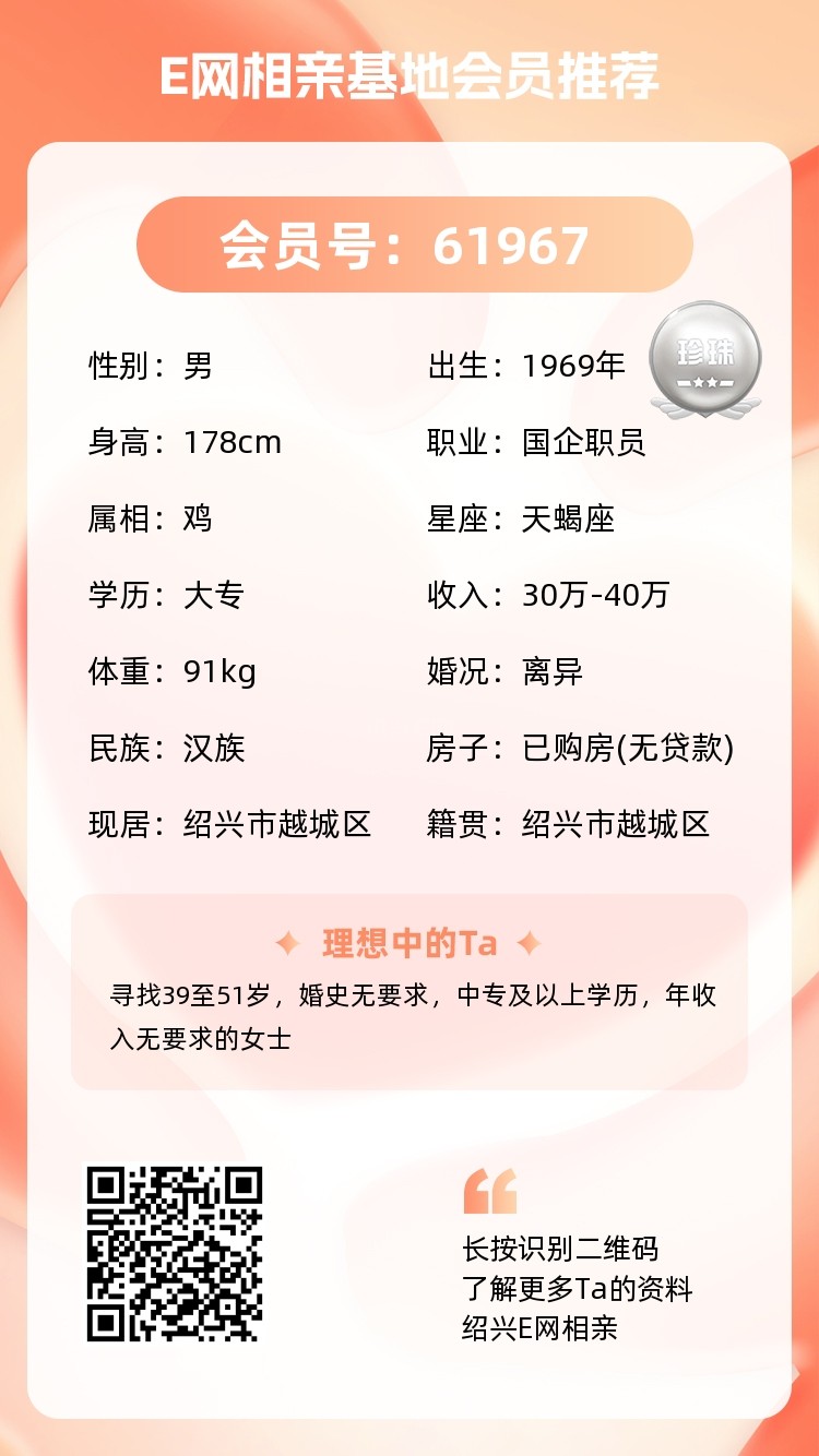 他想找51岁以下,婚史不限的女士,中意他可以联系红娘介绍哦+61967