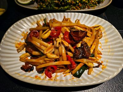 椿鸡爪味道还不错,配料非常丰富,酸辣口。
