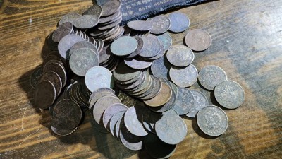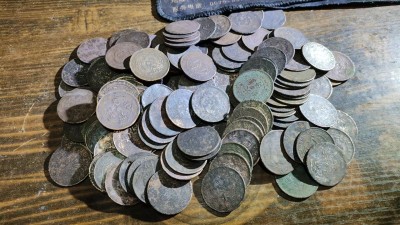 一起136个铜板 龙的双旗的都有 比例差不多各半 三块一个通走 光板的没有