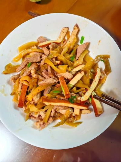 晚餐烧的,榨菜还得淡点,这种香干偏硬,还是那种五香软点的来得入味。