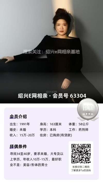 寻觅:31岁以下,身高173+,大专以上,五官端正,有独立婚房,开朗稳重有担当的绍兴本地男生。
