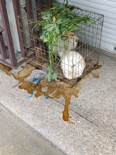 现在养猫猫狗狗的人挺多的,但养兔子的人极少。昨日让有幸遇上,一对胖胖的白兔。
