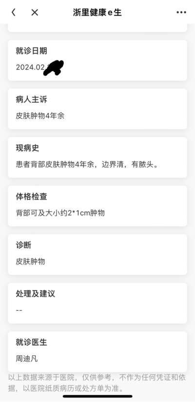 :我也是背脊上长了一颗,前几次在皮肤科挤了一下毒,治标不治本又大起来了,去年在人民医院做的日间手术,手术做好后去住院病房待了2个小时,就回家了[图片][图片](2025-10-24 14:31)