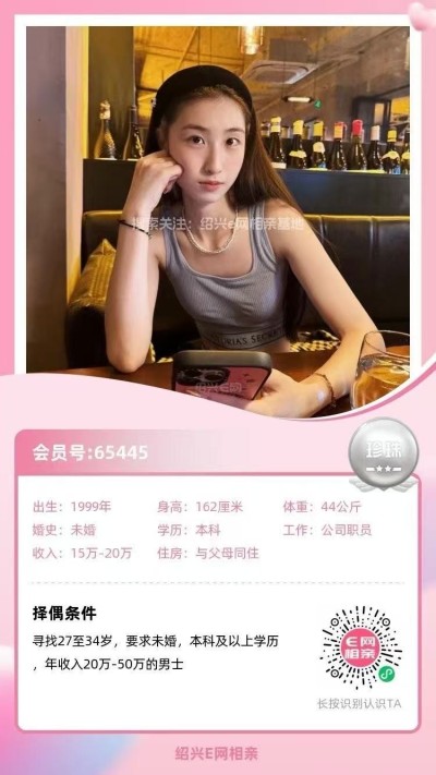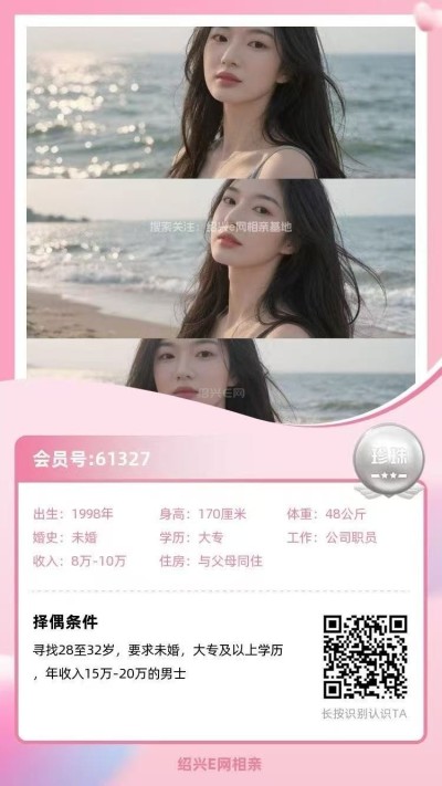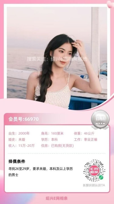 寻觅:32岁以下,身高175+,大专以上,外形干净清爽,年薪15w+,有独立婚房,体贴上进人品佳的绍兴本地男生❤️