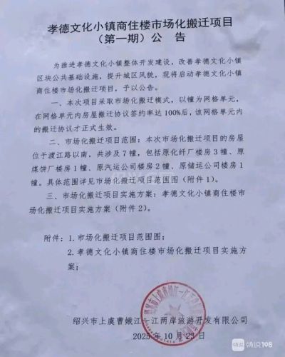 为推进孝德文化小镇整体开发建设,改善孝德文化小镇区块公共基础设施,提升城区风貌,现将启动孝德文化小镇商住楼市场化搬迁项目,予以公告。