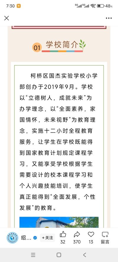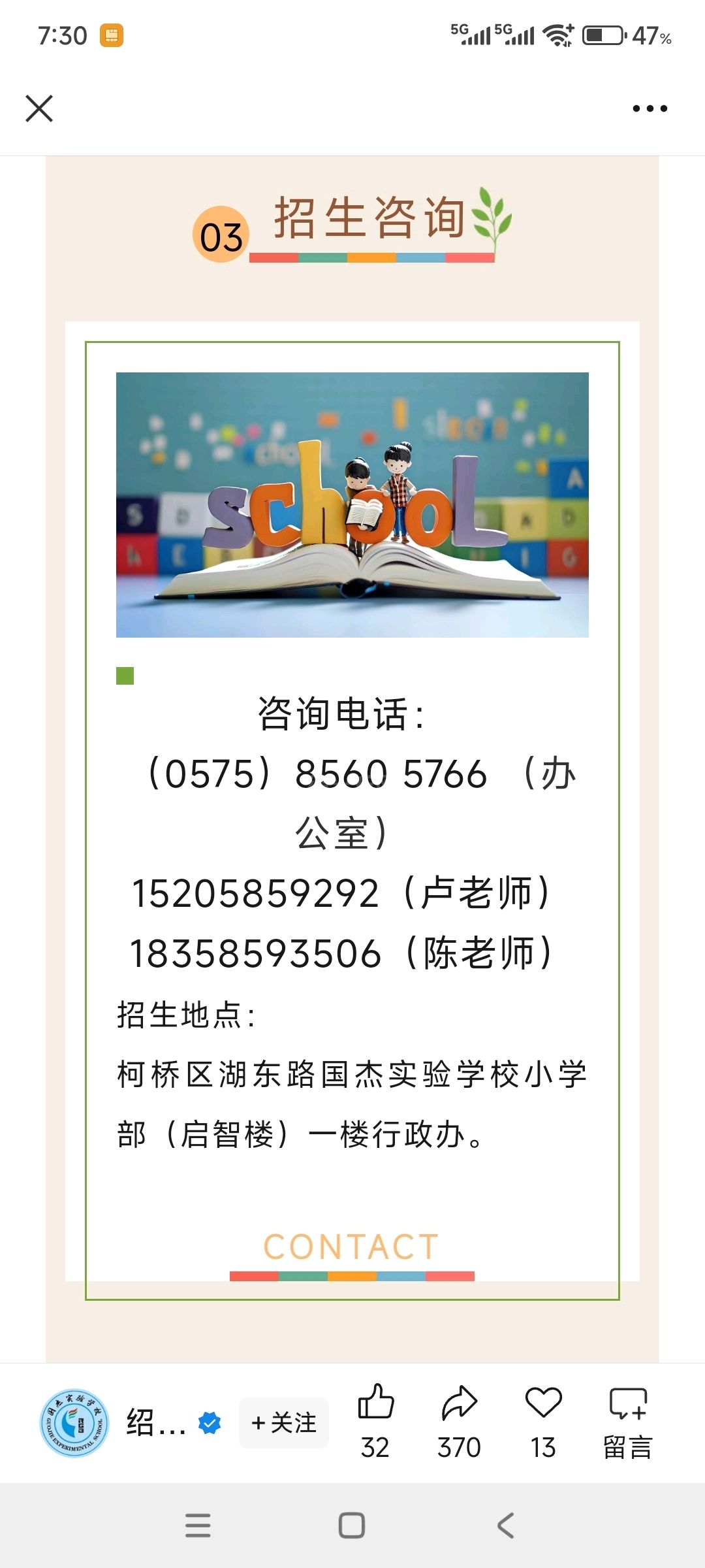 去柯桥的——原轻纺城中学(民办),现绍兴国杰实验学校咨询联系下!