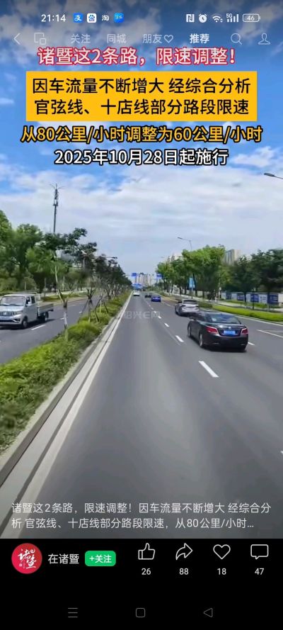 限速80.,没有测速都能跑100,沿途都是村庄,经常能遇到村民横穿马路。非常危险
