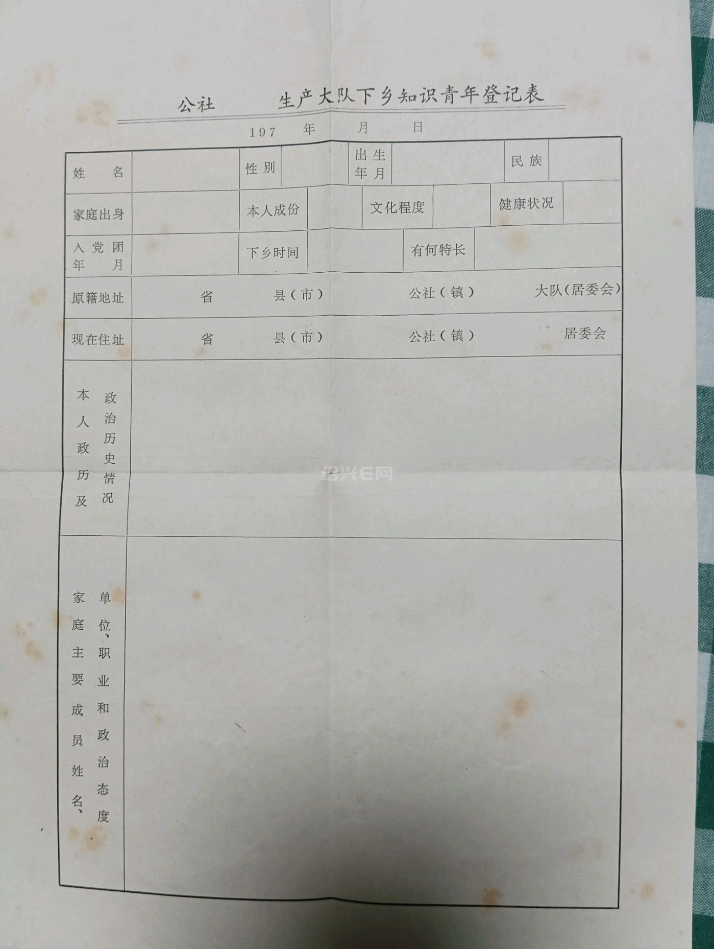 现在这种表格见不到了,你如果填写过,起碼也有五,六十岁了!