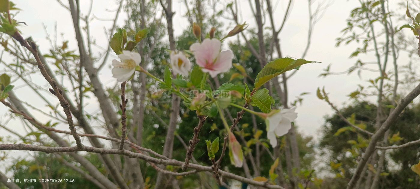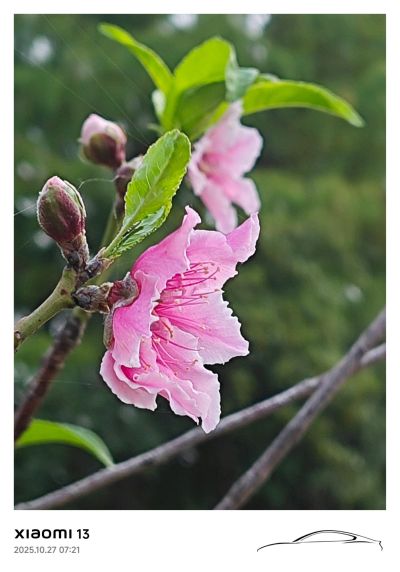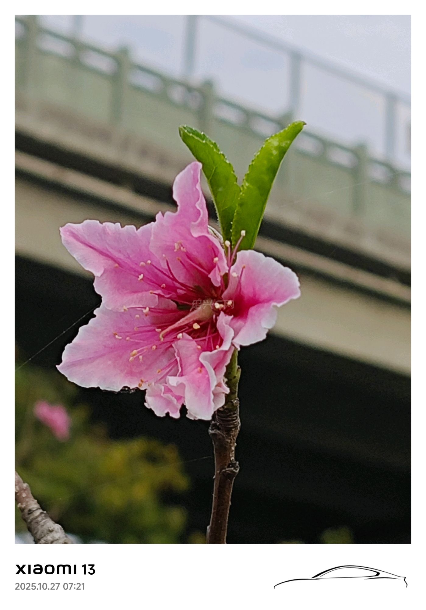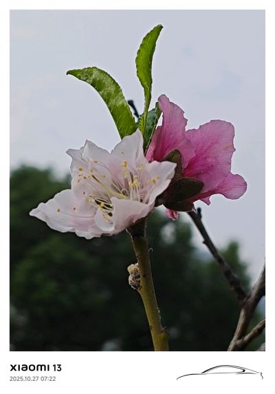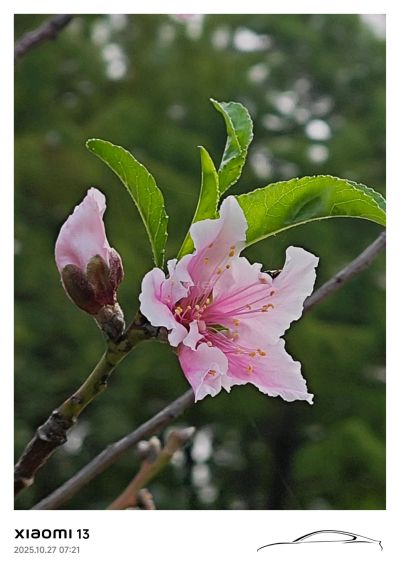 这天也太反常了,秋天的桃花也能开,不知能不能结果。
