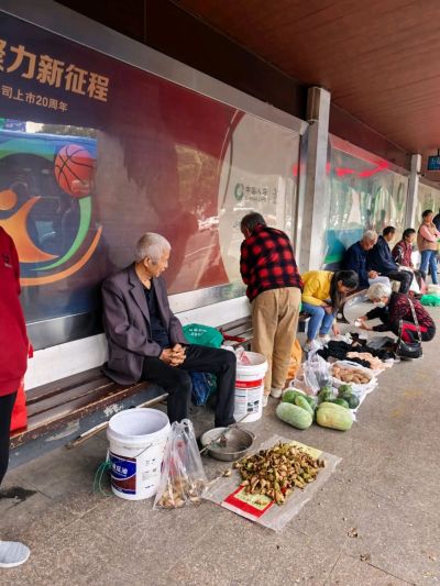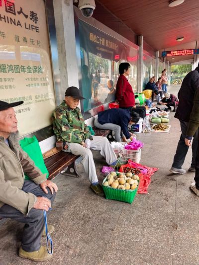 白马畈的公交站菜市场