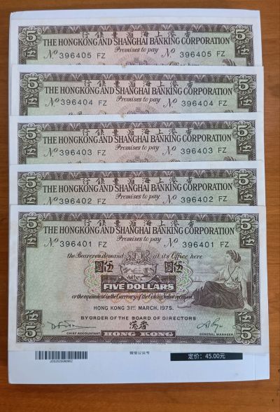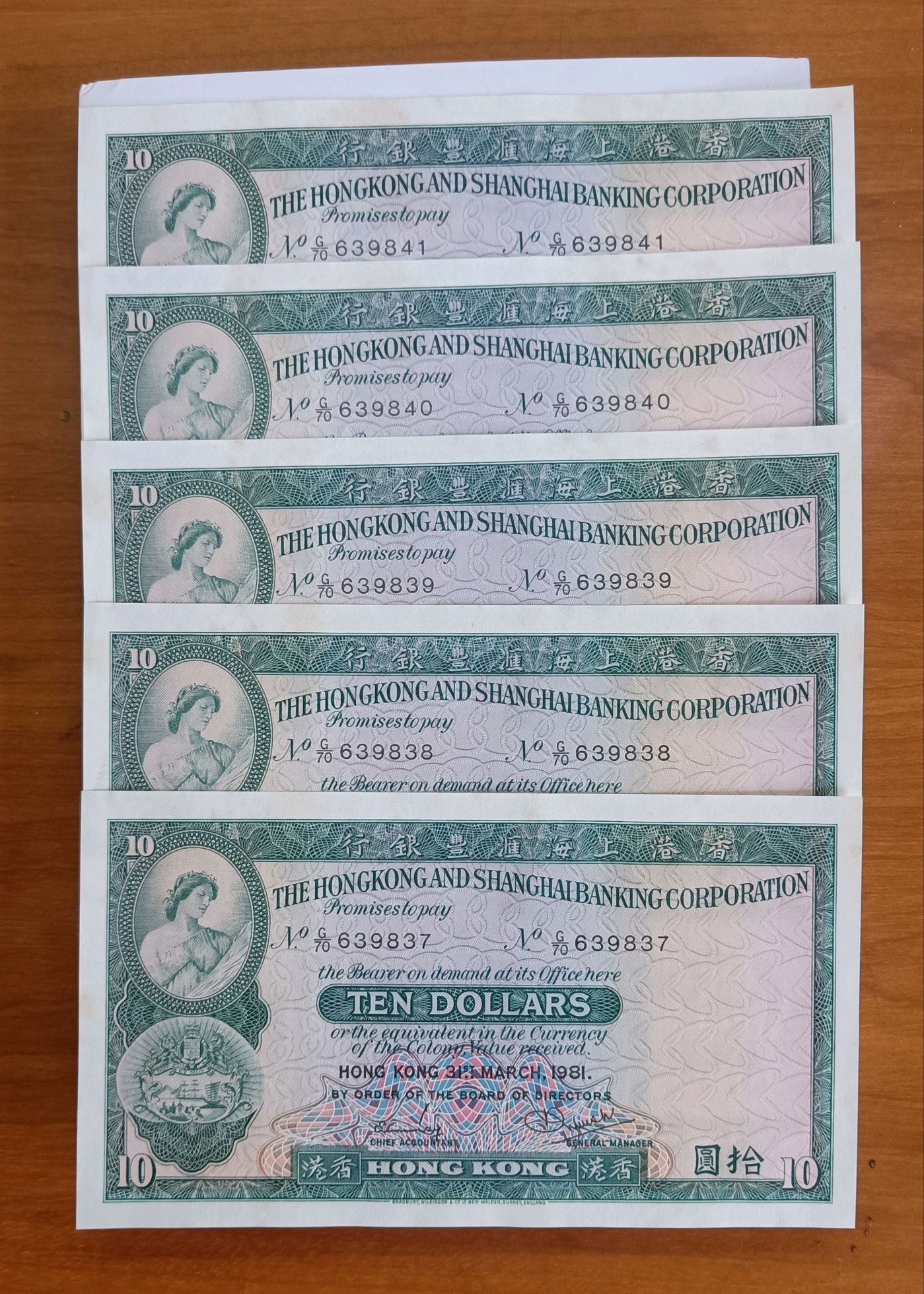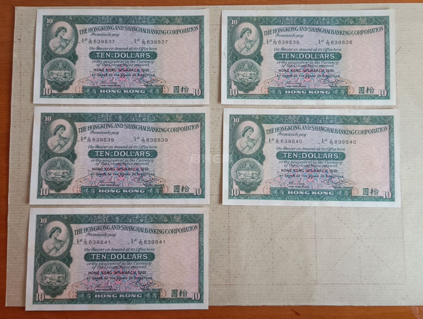 全新老港币,有黄斑。汇丰银行5元,10元,票面平整,四角尖尖,五连号。适合收藏把玩,送红包。一起要36元一张,单挑40元一张。自提地址,越城区城东文澜中学附近。联系15381659360。