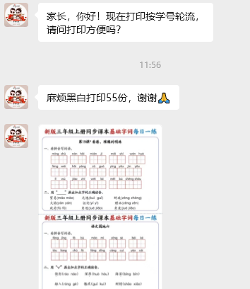 从来没有按学号轮流打印过,一般都是学校负责打印,然后我们出打印费就好了,记得期末的时候家委会请单上有这个费用的。