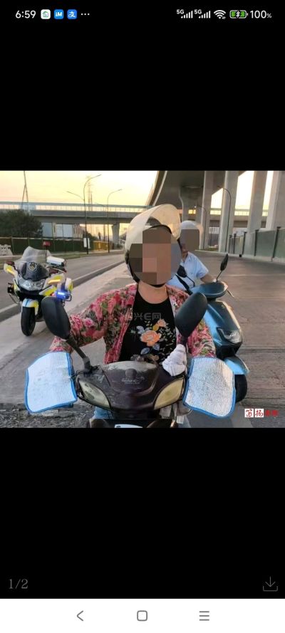 10月16日8时50分许,铁骑在于越快速路巡逻时发现有电动三轮车在高架上行驶,实施了驾驶非机动车违反禁令标志指示、逆向行驶的两项违法行为,铁骑安全护送其转入地面道路后,对其进行了批评教育。