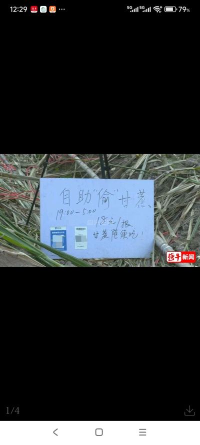 他在甘蔗地旁边摆了一块牌子,写上“自助‘偷’甘蔗,19点到5点,18元/根,甘蔗随便吃!”而大家给予了超乎想象的回应——1000根甘蔗全被“偷”完,王勇龙的账户收款2万余元。也就是说,“偷”甘蔗的人不光都付了钱,有的还多给了。“像昨天晚上就有一个凌晨四点钟付款的,他给了18块8毛8,我们的甘蔗1根18块,等于他给我‘打赏’了8毛8。”