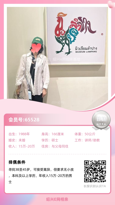 硕士学历,大学助教(正编),年薪20w左右,有车。父母经商,有退休金和医保,弟弟婚房已备,家境殷实。