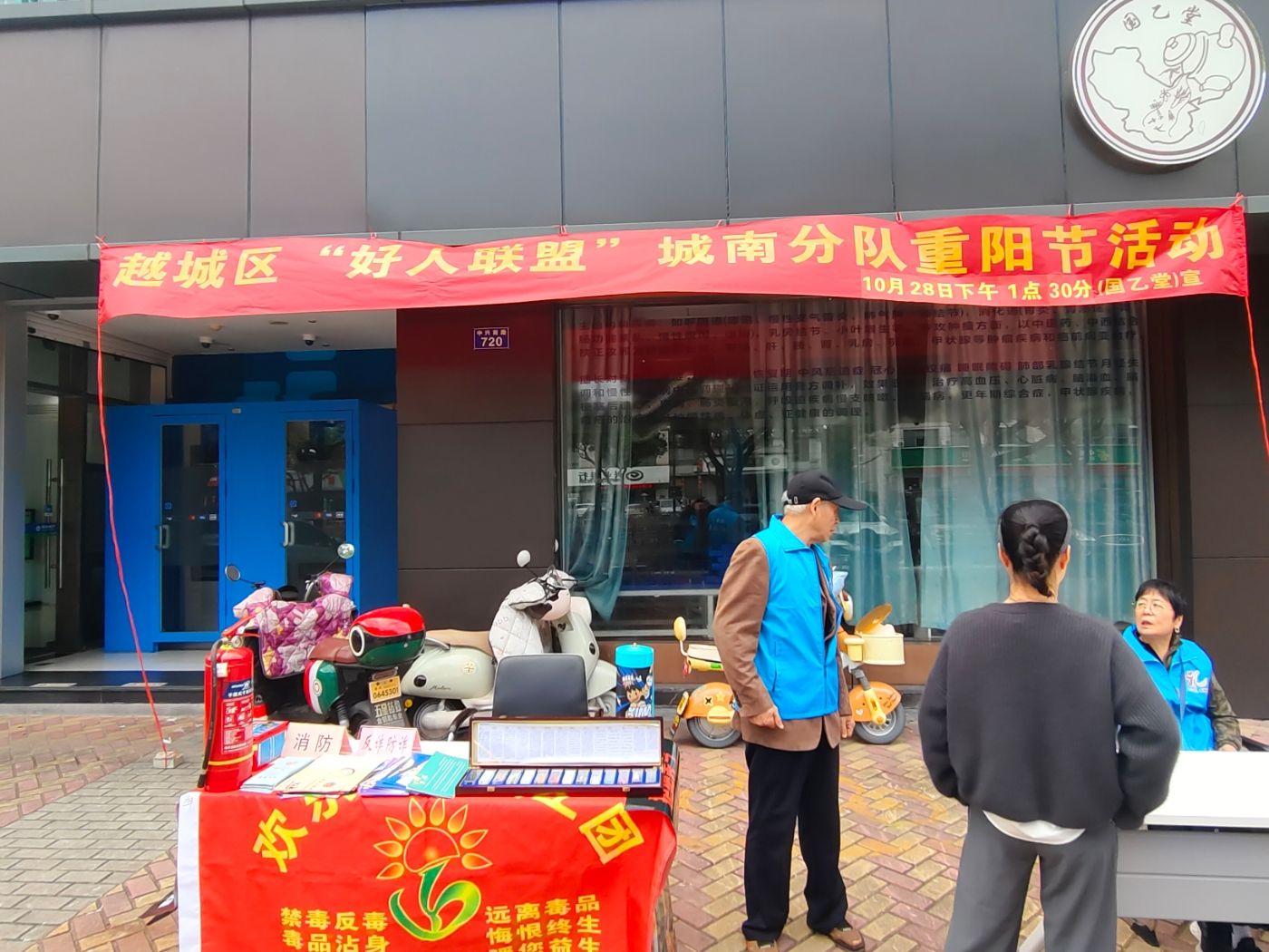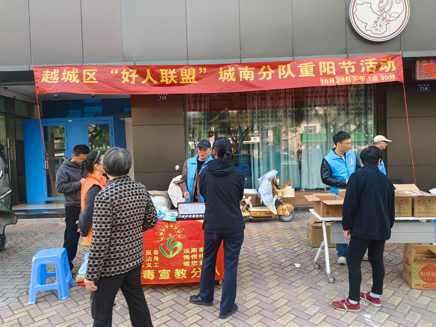 10月28日下午,由越城区“好人联盟”城南分队举办的“迎重阳,献爱心”为民服务活动在中兴南路举行。活动得到了十余家爱心单位及爱心人士的积极响应,活动现场气氛热烈,服务内容丰富,有中医义诊、口腔科义诊、测血压、艾灸、优价商品义卖、禁毒宣传、垃圾分类宣传等。活动得到广大群众的积极参与和热情好评,纷纷表示,这么贴心的为民服务,这么优质的美味食品,优惠幅度又这么大,充分体现了“好人联盟”热心为民的无私奉献精神。
