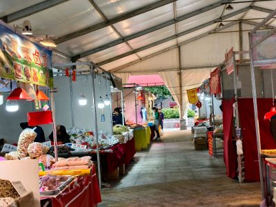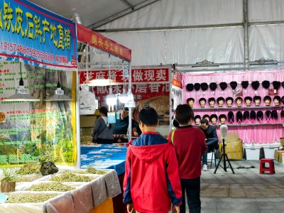 名人广场农产品展销会现场冷冷清清,摊位前少有市民驻足咨询,昔日热闹的展会如今备受冷落。