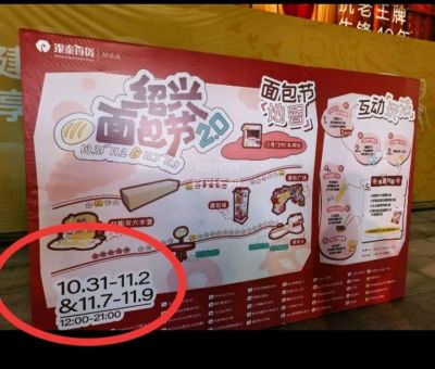 :这是银泰城五号门在搞面包节活动啊.今天有没有了.有去逛逛(2025-11-01 16:00)