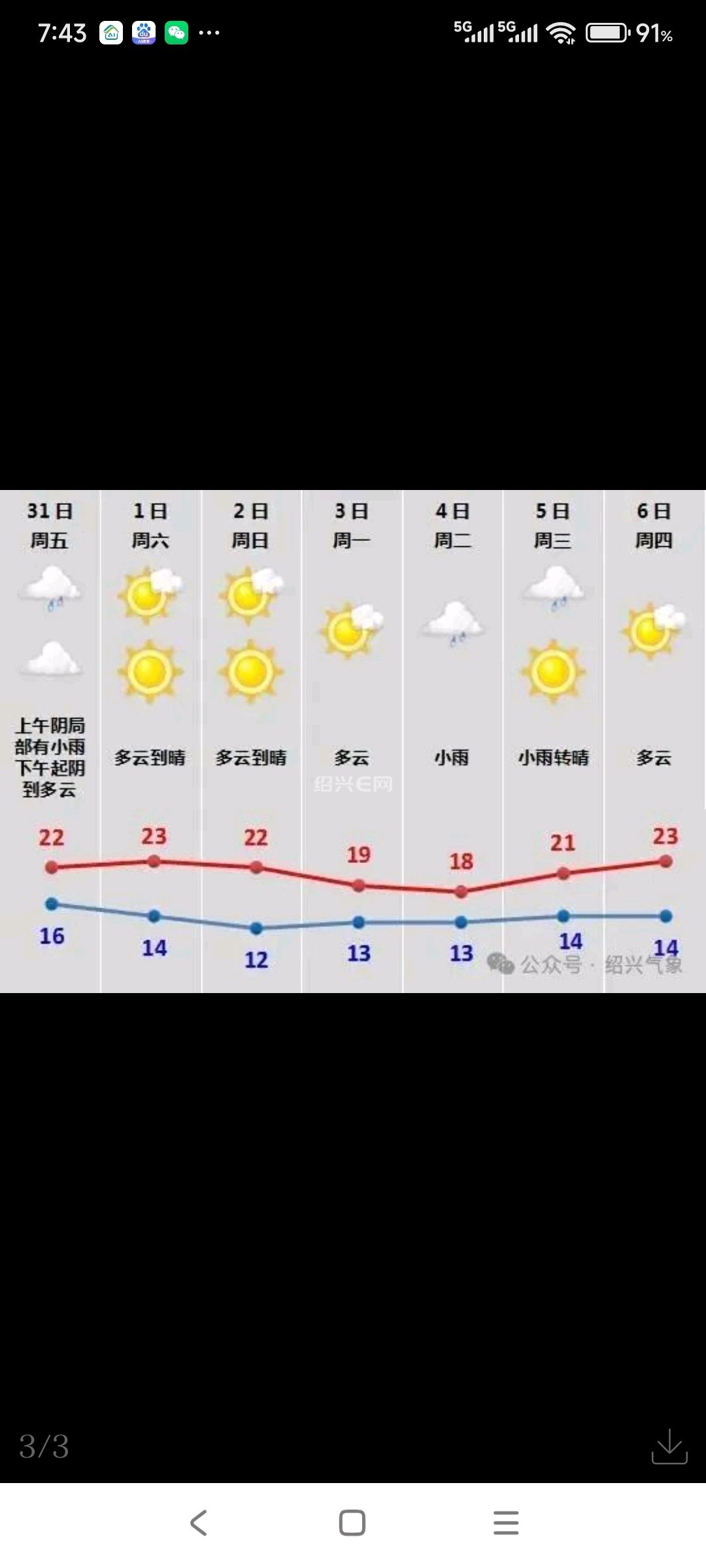 11月初,绍兴区域内天气以多云到晴为主,光照条件较好,气温波动相对平缓,适宜开展户外活动及日常生产生活,也利于衣物晾晒等日常事务安排。周末市民朋友们也可以选择出门秋游,赏桂散心~
