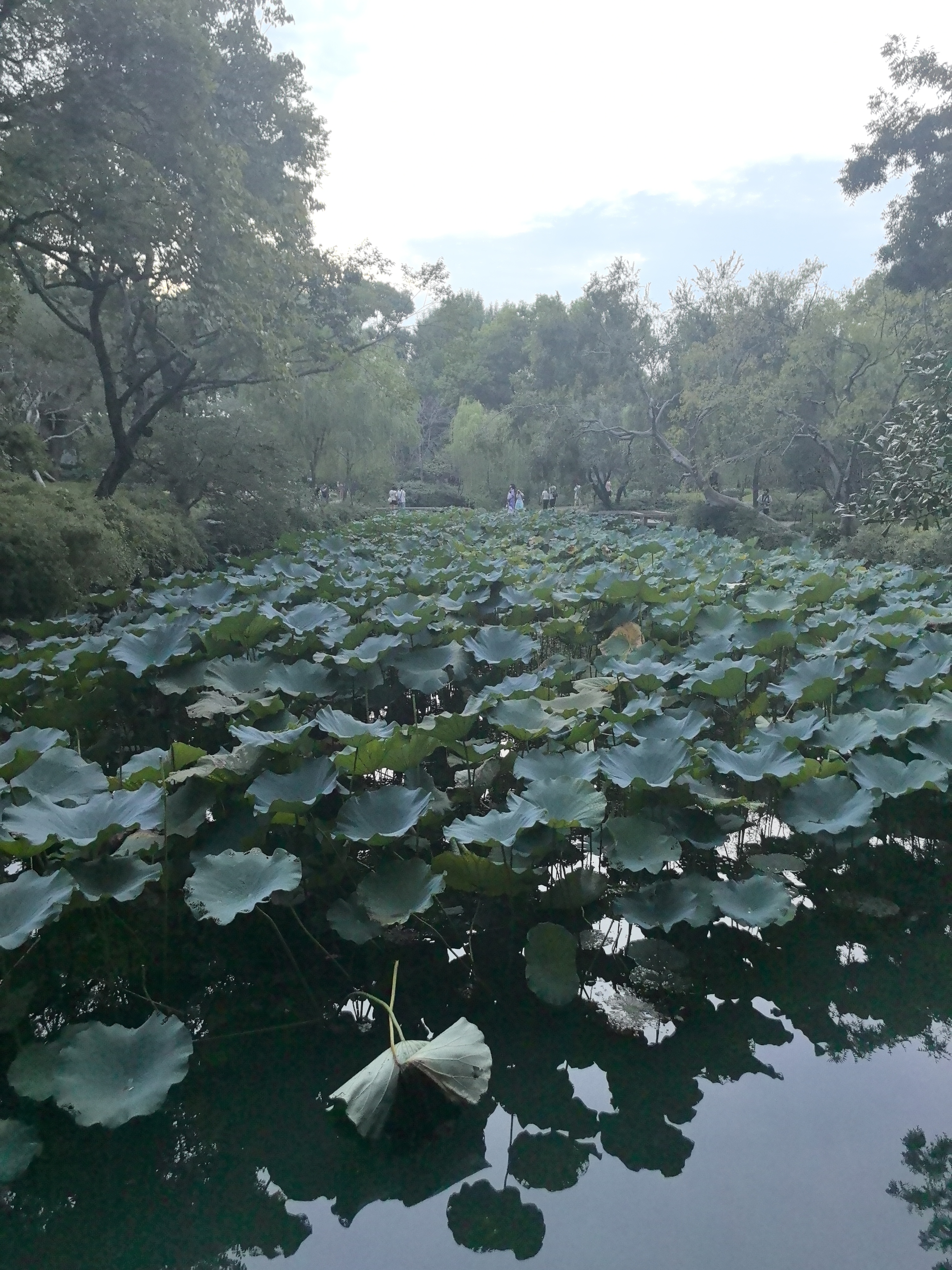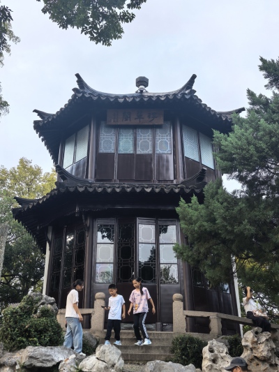我们进园参观已是下午四点半左右,天色稍显暗淡,但游客依旧是络绎不绝。拙政园内草木葱茏,古树修竹、垂柳腊梅、田田荷叶,郁郁葱葱,与园内的亭台楼阁、假山水榭相映成趣。曲水流觞,池水清漾,漫步园内,宛如步入一幅立体的水墨画卷。有的游客持专业相机捕捉最美的风景,有的游客自拍留念。待我们出园时,夜幕已降,园内依旧游人如织。原来,为避开白天高温与人潮,园方还特别开辟了夜场参观。