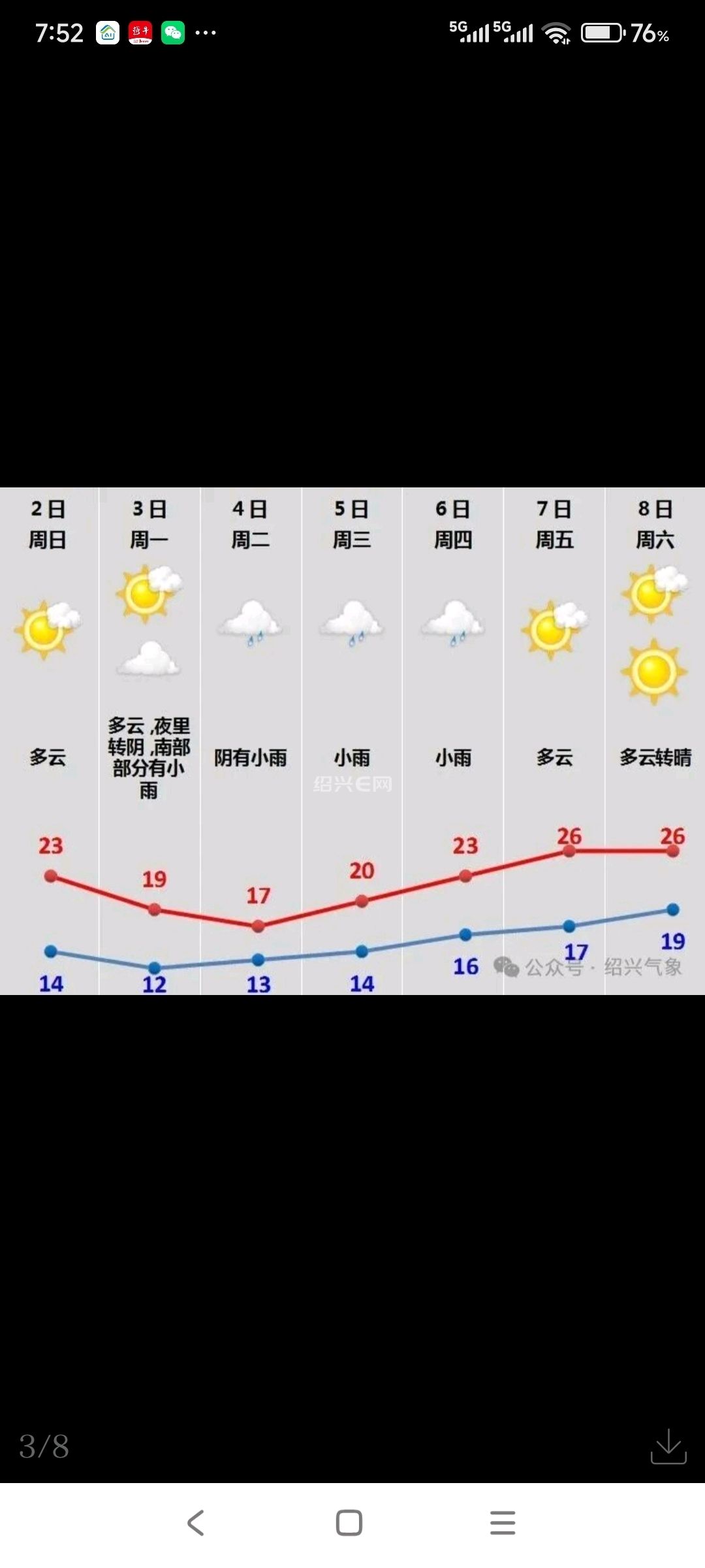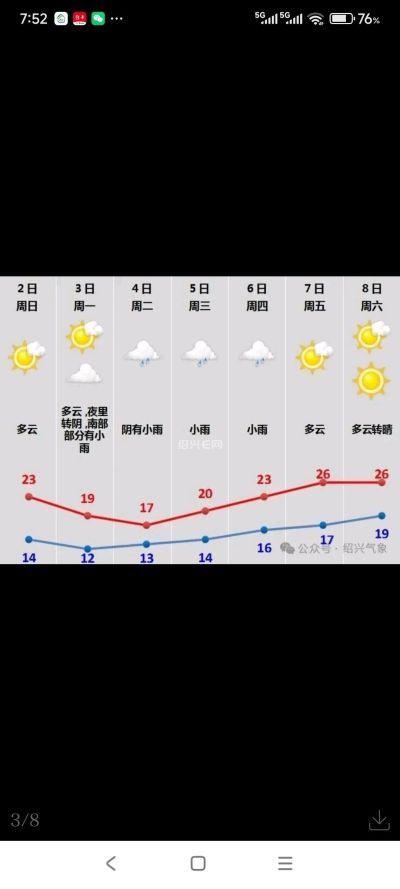 7日至8日,绍兴天气短暂好转,气温逐步回升,最高气温有望升至26℃左右。