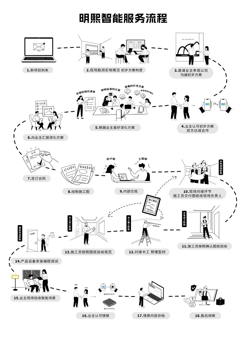 针对部分已经线上购买了智能产品的网友,明熙智能提供专业的智能施工体系