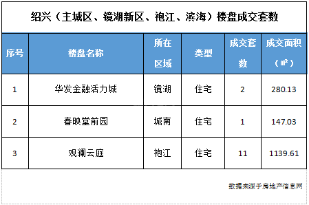 日成交丨11月1日绍兴(越城区)商品房网签14套
