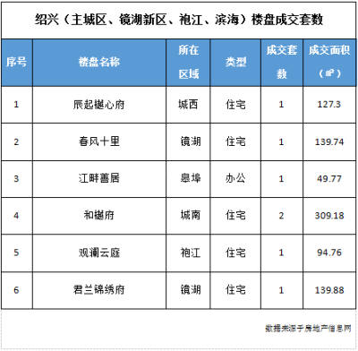日成交丨11月4日绍兴(越城区)商品房网签7套