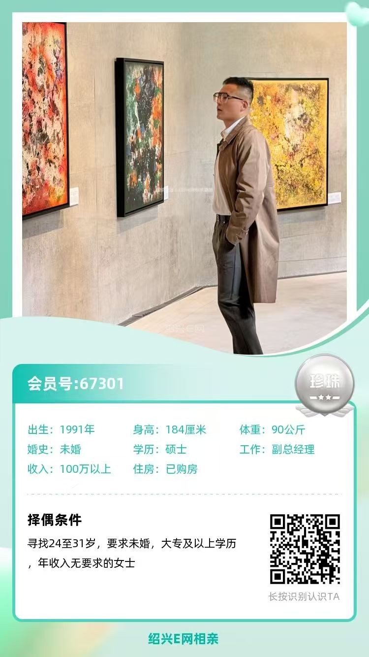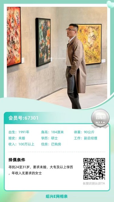 91年柯桥男生,未婚,身高184,硕士学历,在杭州工作,国企副总,年薪100w+,房车俱备。