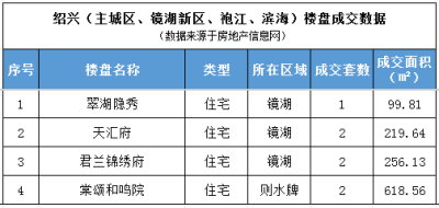 其中天汇府、君兰锦绣府、棠颂和鸣院网签2套排行第一;其他楼盘网签1套及以下。需要注意的是,因网上备案滞后等诸多原因,部分销售数据未进入统计,部分数据或含其他商业数据。具体数据如下: