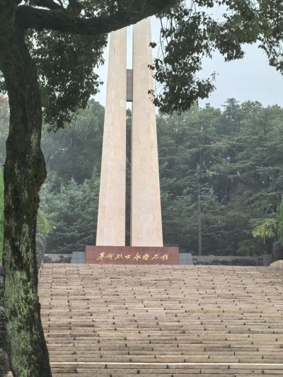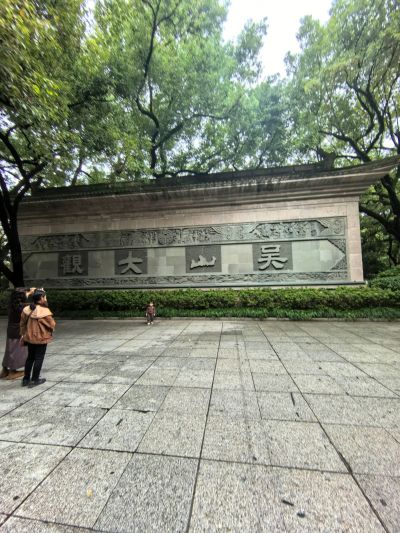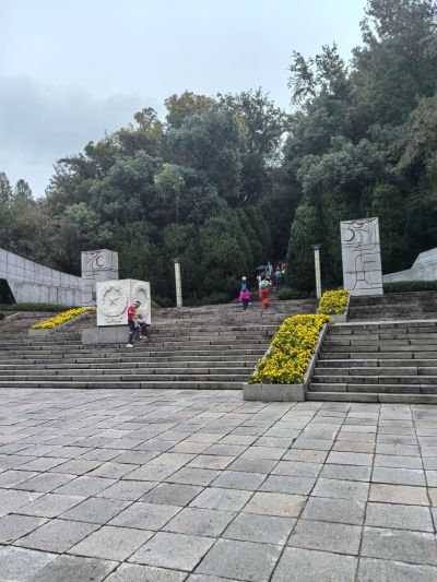 下午2点45分,我们到达马路对面的浙江革命烈士纪念园。沿着宽阔阶梯上行,就来到了纪念馆门前的广场。我们在广场花坛石沿稍稍休息了会儿后,继续沿着游步道前行。约10分钟后,“标毅线”的终点站——“吴山大观”广场就映入眼帘。我看了一眼手表,下午3点07分,我们终于到达“吴山大观”广场。我还为此次同行的七位杭州驴友拍了一张合照。很庆幸能遇到节奏相仿、志趣相投的徒步小伙伴们。