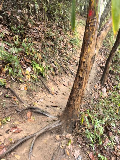 上午9点25分左右,我们到达“石人亭”凉亭。这里又是一个三叉路口,沿石阶路上行即可。走到023的坐标处,要向左转进入野路,而不是继续往前走。这个地方容易走过头。我们幸好遇到一个搞环卫的老师傅提醒,才没有走回头路。