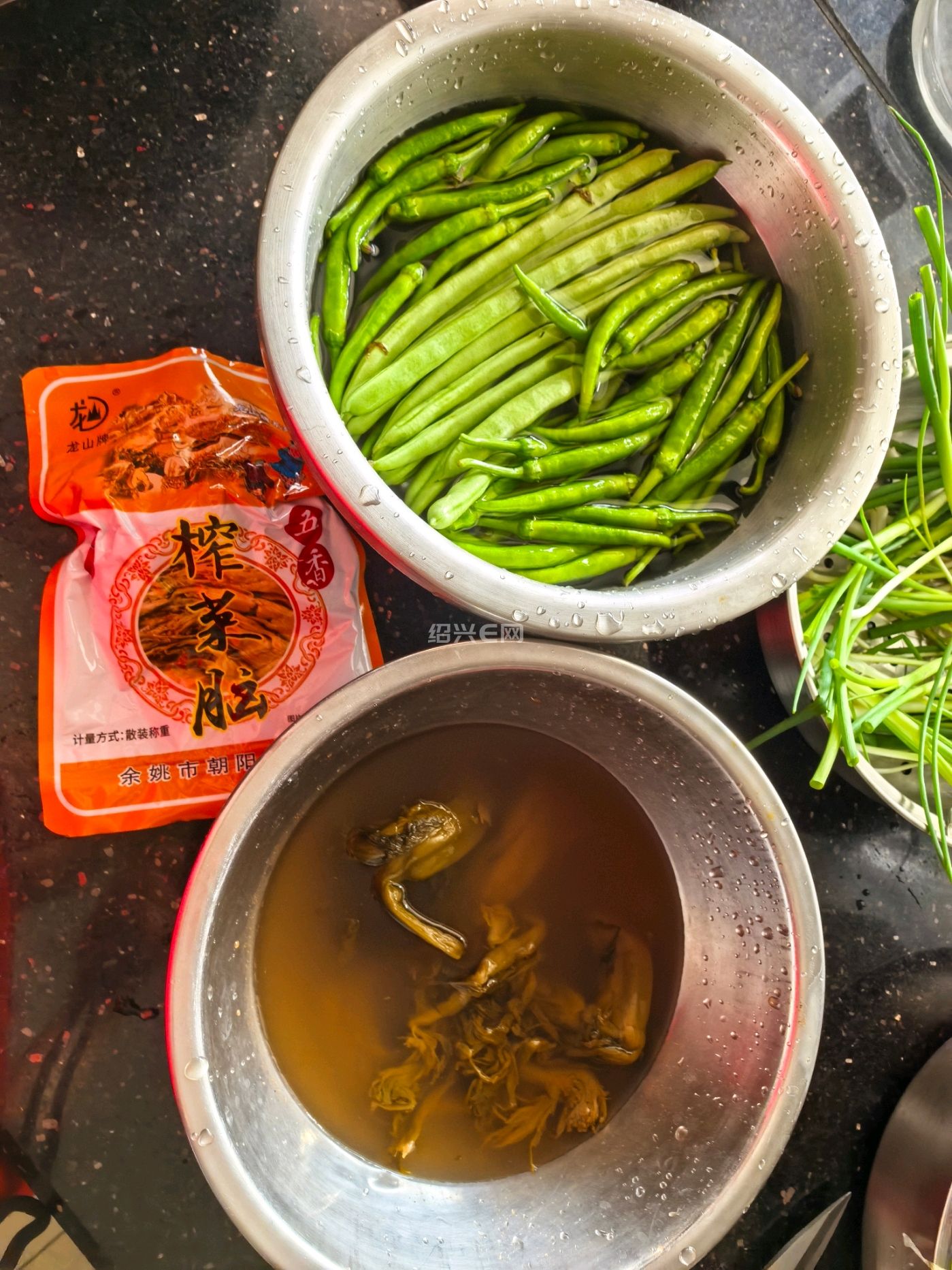 给食材漂洗着。榨菜脑还因为咸,不过也不能漂的久以免太淡就不是这种味了。