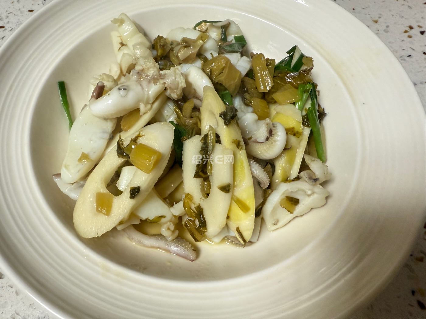 那是极难烧的一只菜,就是墨鱼,要嫩。我不会呢,不知楼主是怎么烧的?