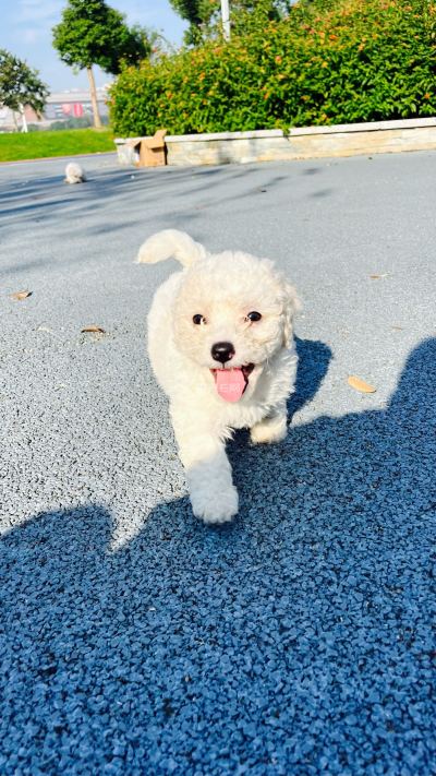 谁能拒绝一只刚满40天的家养小比熊啊!浑身雪白雪白的软毛,摸起来像rua云朵,走路小短腿迈得摇摇晃晃,偶尔栽个小跟头,翻个肚皮就能把人萌化~