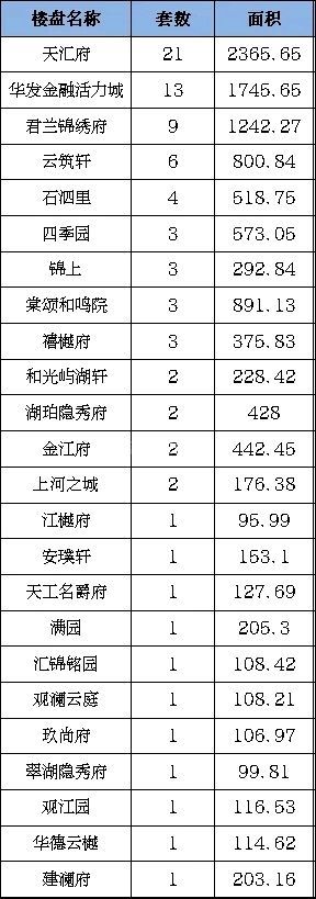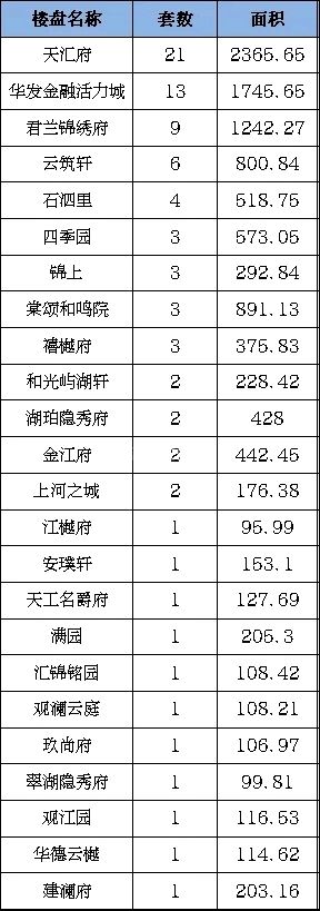 商品住宅成交中,主城区成交15套商品房,成交面积2834.55平方米;袍江区域成交13套商品房,成交面积1506.24平方米;镜湖区域成交商品房56套商品房,成交面积7180.27平方米。位于镜湖区域的天汇府成交21套;位于镜湖区域的华发金融活力城成交13套;位于镜湖区域的君兰锦绣府成交9套,位居本周商品住宅成交套数排行前三。
