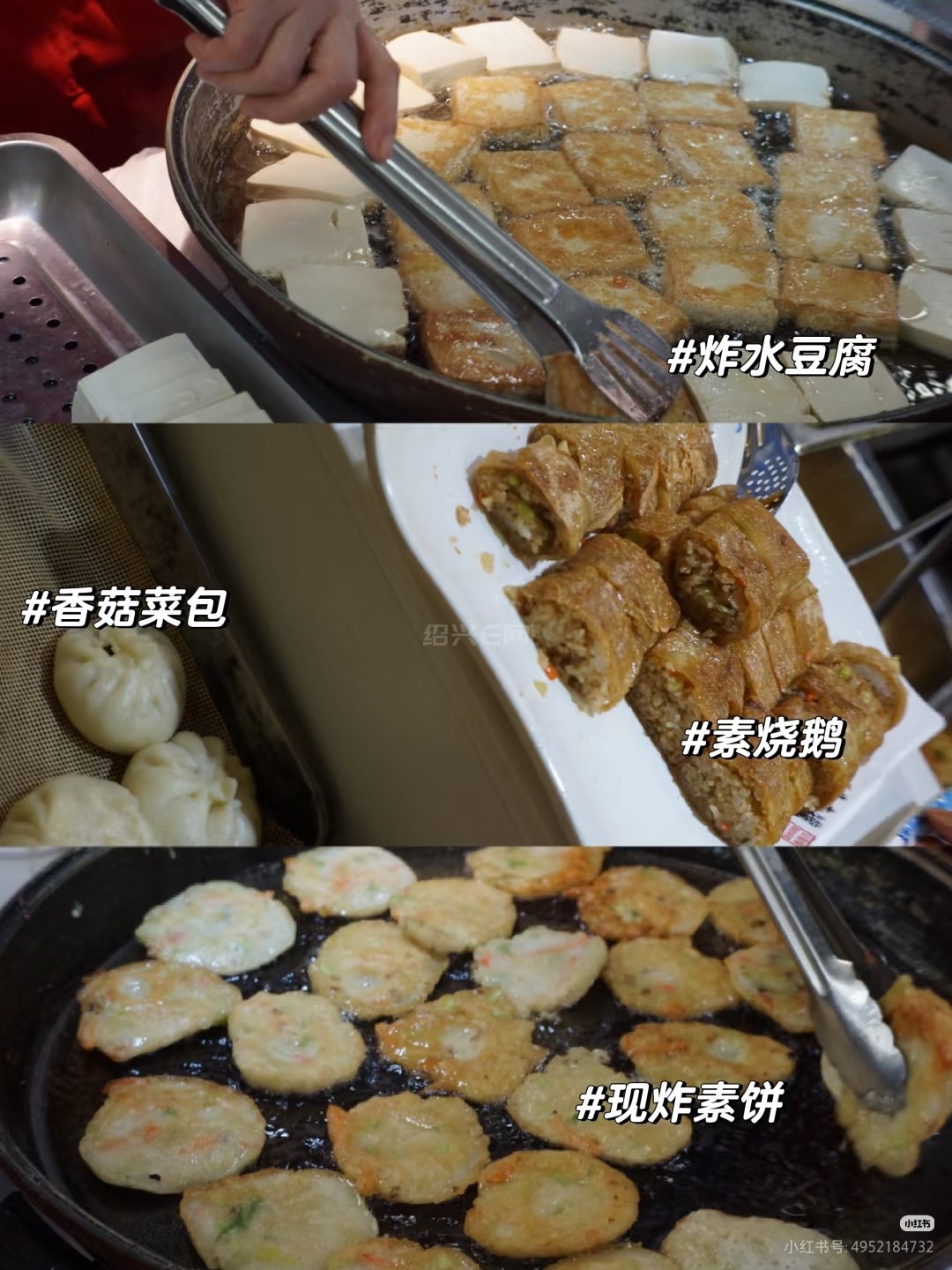 靠墙现炸的素饼很好吃……品种很多每种来一点就很饱了