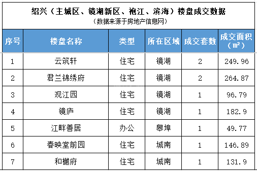 其中云筑轩和君兰锦绣府网签2套排行第一,其他楼盘网签1套及以下。需要注意的是,因网上备案滞后等诸多原因,部分销售数据未进入统计,部分数据或含其他商业数据。具体数据如下: