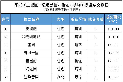 11月20日绍兴(包括主城区、镜湖、袍江、滨海)商品房网签7套,网签面积1146.07平方米。其中,商品住宅网签6套,办公物业成交1套。