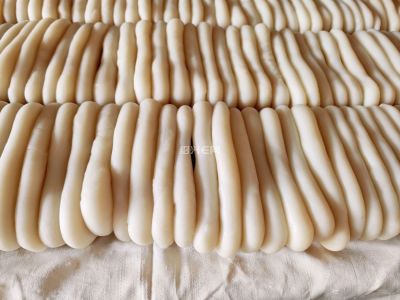手工年糕应该是话话的。现在能做正宗手工年糕的人基本没有了。手工年糕的米至少浸半个月,然后带水磨成米浆,再把米浆灌入绸袋,然后上榨压干,再上蒸蒸熟糕花,再放入捣臼反复锤打。然后再做成年糕的样子。