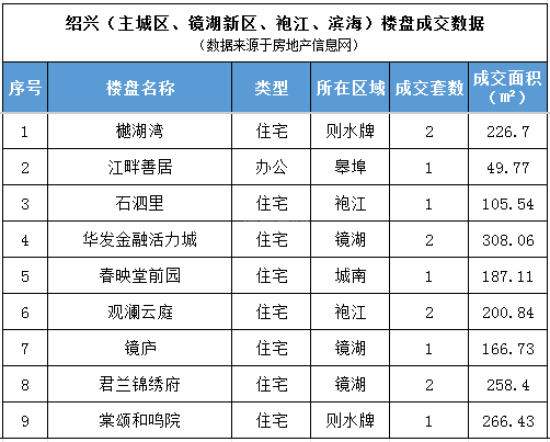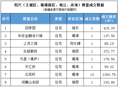 11月26日绍兴(包括主城区、镜湖、袍江、滨海)商品房网签17套,网签面积2646.03平方米。其中,商品住宅网签17套,办公物业成交0套。