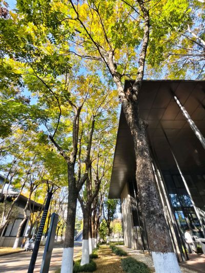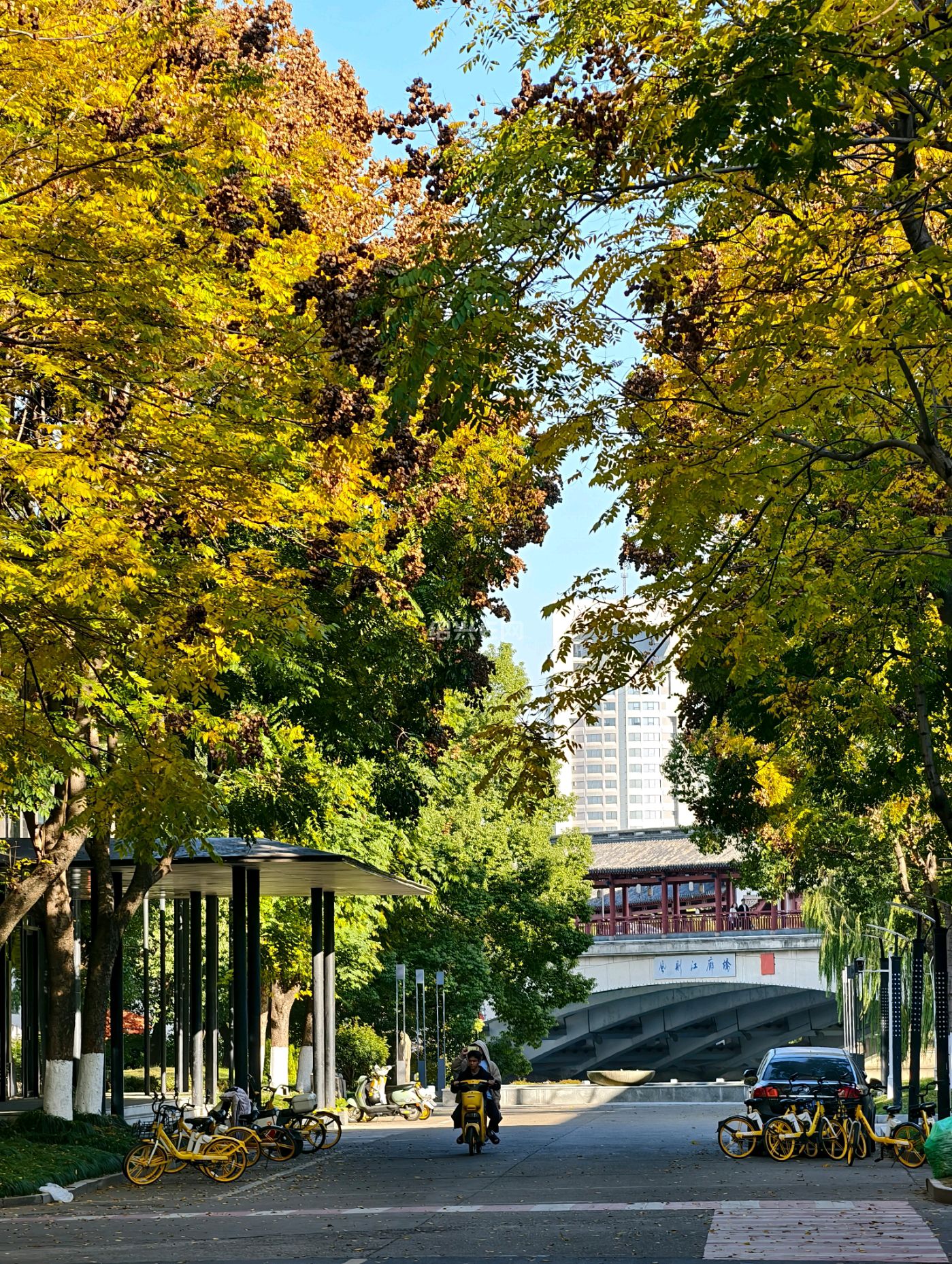 近日,绍兴文理学院校园里秋色渐浓,道路两侧树叶晕染金黄,廊桥与秋景相映,静谧风光裹满秋意,成了师生眼中的诗意日常。