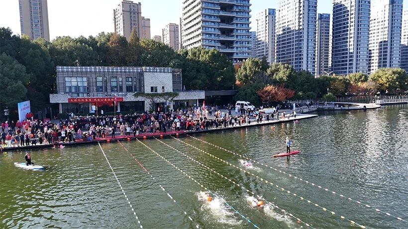 现场气氛随着比赛推进不断升温,各队你追我赶,浮球点点,浪花飞溅,岸边加油声、欢呼声此起彼伏,成为寒冷水域边最动人的画面。