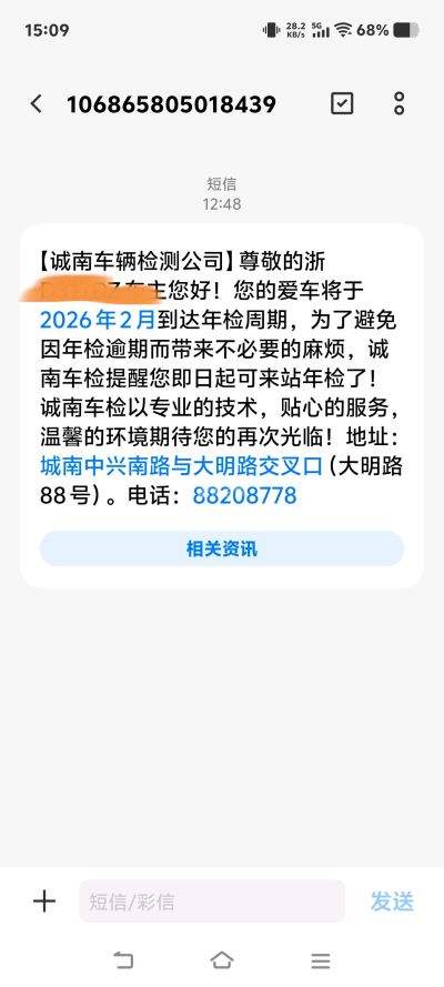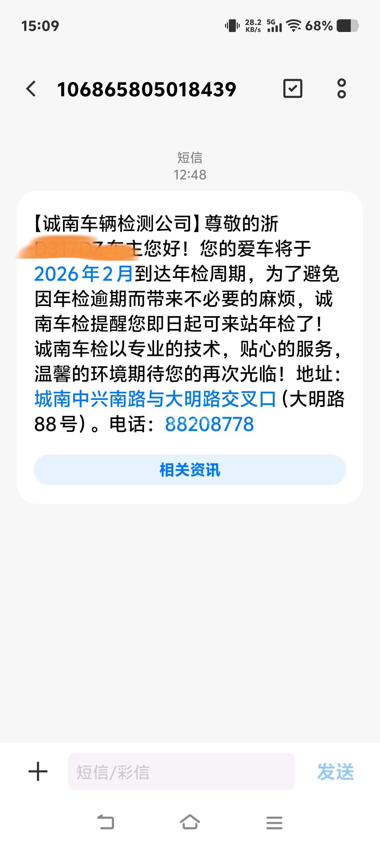 每年年底各种短信飞过来,今天收到年检短信,前几天收到保险公司短信,昨天收到银行短信说要换卡,刚才有收到抖音平台说恭喜我有资格带货直播了,一天几百可入账等等,当然,像抖音平台这短信肯定是假的,因为我不看抖音不玩抖音的,所以这条信息果断删除,其他保留是因为必须要办的哦!