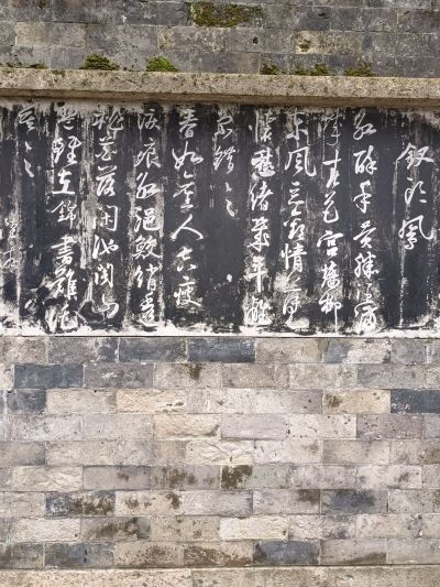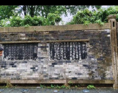 ?此番游览,我看到宋井亭内的双眼古井,这是宋代的遗存,还有六朝井亭内的古井,都足以证明沈园的千年历史。而唯一能证明陆游与唐琬悲情故事的,便是《钗头凤》词碑。它将陆游与唐琬的《钗头凤》词刻在宋砖上,再把字砖嵌砌在屏壁上。旁边新立《半壁亭》,内有《沈园重建碑记》。