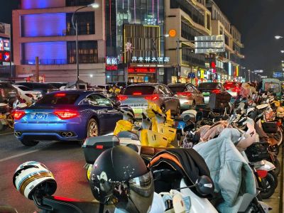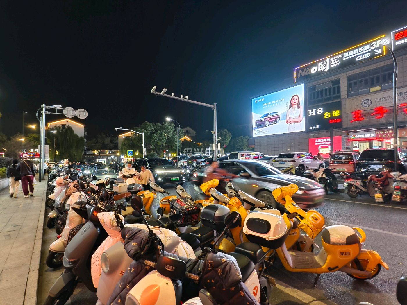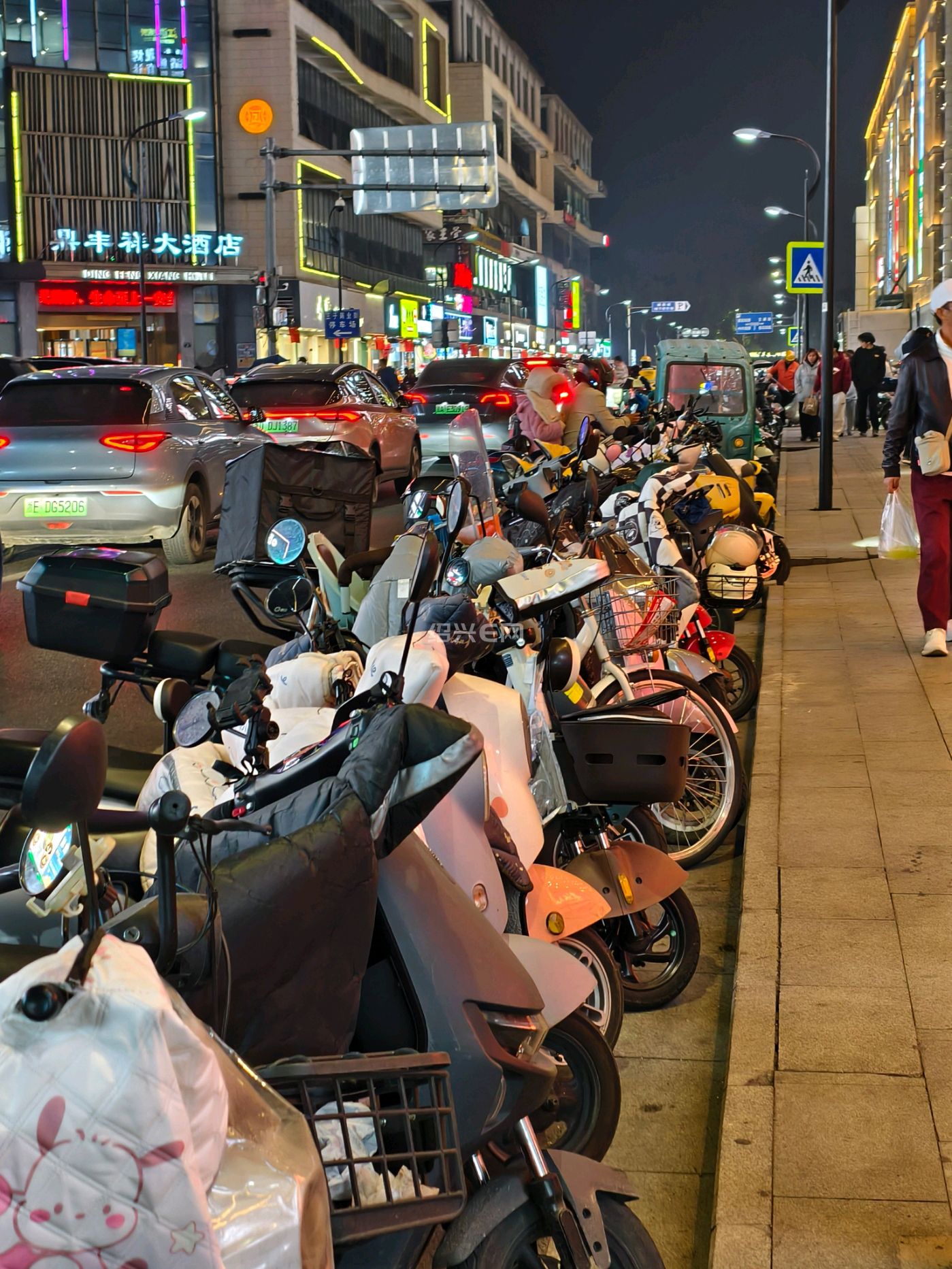 周末天街也堵车,电瓶车停满,但这边没人拍照发帖。