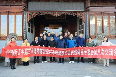 绍兴市收藏家协会民俗藏品专委会的藏家们,分别与上虞区收藏家协会会长陆建国,中鑫集团有限公司创始人,浙江中鑫艺术博物馆创办人王水鑫,馆长陈少峰;上浦镇大善小坞村党委书记虞建淼、副书记赵荣江等相关领导进行了收藏经验的交流。