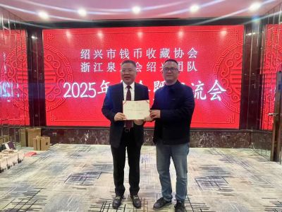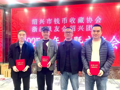 绍兴市钱币收藏协会第二届会员代表大会,12月7日下午在绍兴稽山宾馆召开,章增伟当选会长、朱建铭当选常务副会长、张殿当选副会长兼秘书长,特聘陈宝祥为协会创会会长。